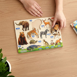 . بازل حيوانا الغابة خشب عربي انجليزي – لعبة تعليمية خشبية للأطفال لعبة تعليمية ممتعة تساعد طفلك على التعرّف على الحيوانات البرية وأسمائها بطريقة تفاعلية وآمنة، مع تصميم يشجّع على التعلم...