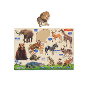 بازل حيوانا الغابة خشب عربي انجليزي – لعبة تعليمية خشبية للأطفال