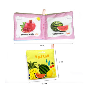 .التحدث للطفل حديث الولادة باستخدام كتب القماش هي من افضل طرق تنشيط حاسة السمع و باستخدام كتب القماش تتنشط حواس الطفل المختلفة اللمس والسمع والبصر تعلم اللغة: اسماء الفاكهة في الكتاب...