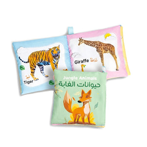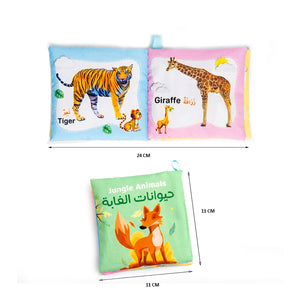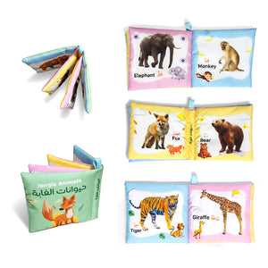 بكتاب قماش حيوانات الغابة الكتاب يلفت انتباه الطفل بصور الحيوانات وأمن لاستخدام الطفل ينمي العديد من المهارات البصرية و الحركية