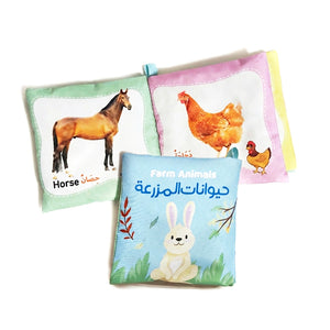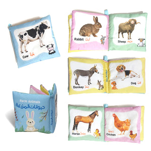 كتاب قماش حيوانات المزرعة للأطفال – (قماش ناعم + ألوان جذابة)