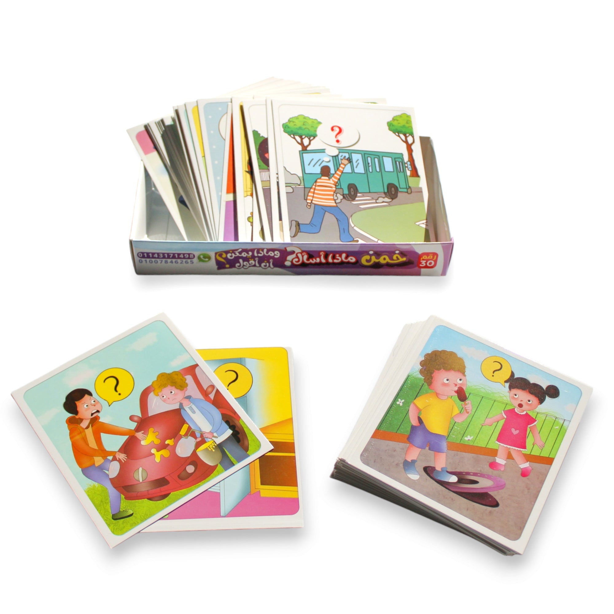 مجموعة "خمن ماذا أسأل؟ وماذا يمكن أن أقول؟ تعلم طفلك فن السؤال والرد المناسب وتساعد طفلك ليفهم المواقف يحللها ويعبر عنها بجمل او أسئلة واضحة