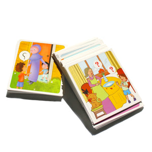 2. تنمية مهارات التحليل والاستنتاج: من خلال المواقف المعروضة على البطاقات، يستطيع الطفل تحليل المشهد واستنتاج الأفكار الرئيسية.