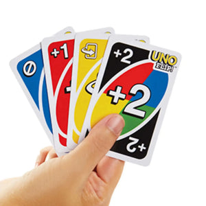 • عندما يكون مع اللاعب بطاقة واحدة يجب عليه أن يصيح بكلمة UNO إذا نسيت أن تقول أونو واكتشف أحد اللاعبين ذلك فيجب أن تسحب ورقتين.