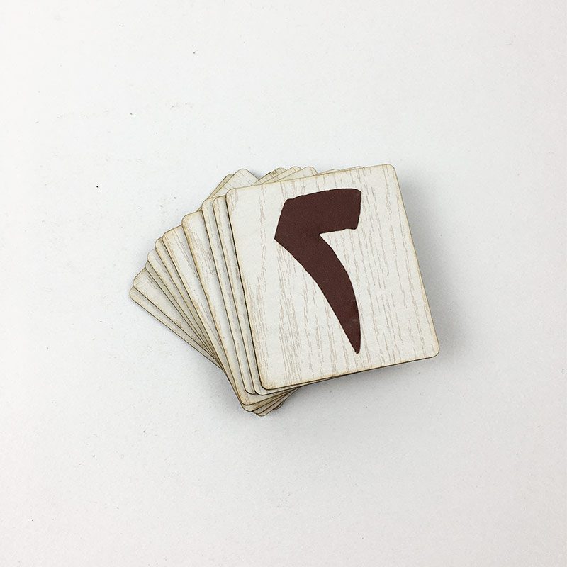 - 10كروت خشبية مرقمة من 0 الى 9 بالارقام العربية بحجم 8*8 سم تقريبا