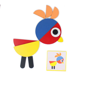 ⦁ 29 قطعة خشبية من الأشكال الهندسية مختلفة الاحجام والاشكال والالوان مثل ( الدائرة- المثلث- نصف دائرة- بيضاوي-وأشكال أخرى)