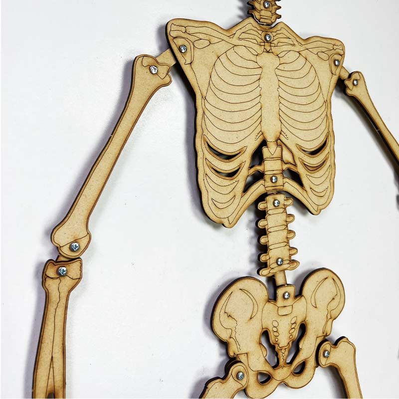 - لوح خشبي يحوي علي جميع اعضاء الهيكل العظمي قبل التركيب بمقاس 24*24سم تقريبا