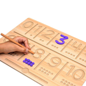 تم تصميمها وفق منهج مونتيسوري لتعزيز المهارات الحسية والحركية من خلال تتبع الأرقام باستخدام القلم الخشبي المرفق أو بأطراف الأصابع او يمكن استخدام اي نوع من الحبوب او الخرز او الصلصال.