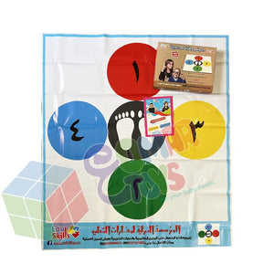 سجادة مكونة من 5 دوائر واحده لوقوف الطفل و 4 دوائر بأرقام متسلسلة ليقفز من بينها الطفل