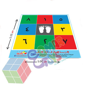سجادة مكونة من 5 مربعات واحده لوقوف الطفل و 4 مربعات بأرقام متسلسلة ليقفز من بينها الطفل