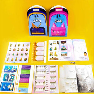 تحوي حقيبة انشطة رمضان ولادي والبنات علي 32 صفحة ملونه من الانشطه المتنوعه ليدرك الطفل اهميه الشهر ومايترتب عليه من فضائل ، وهي عباره عن شنطه جذابه مصنوعه من الورق الملون كما تناسب الطفل لاستخدامات اخري بعد انتهاء الانشطه.