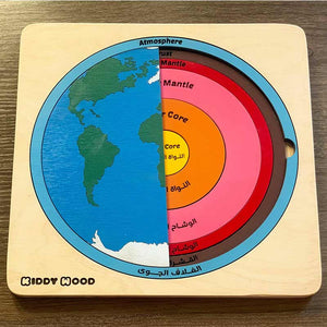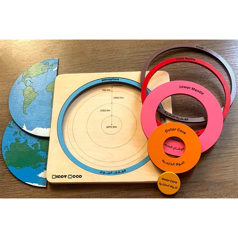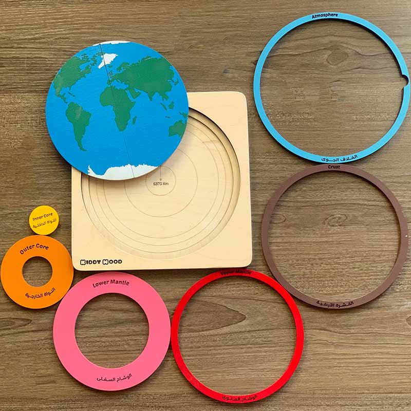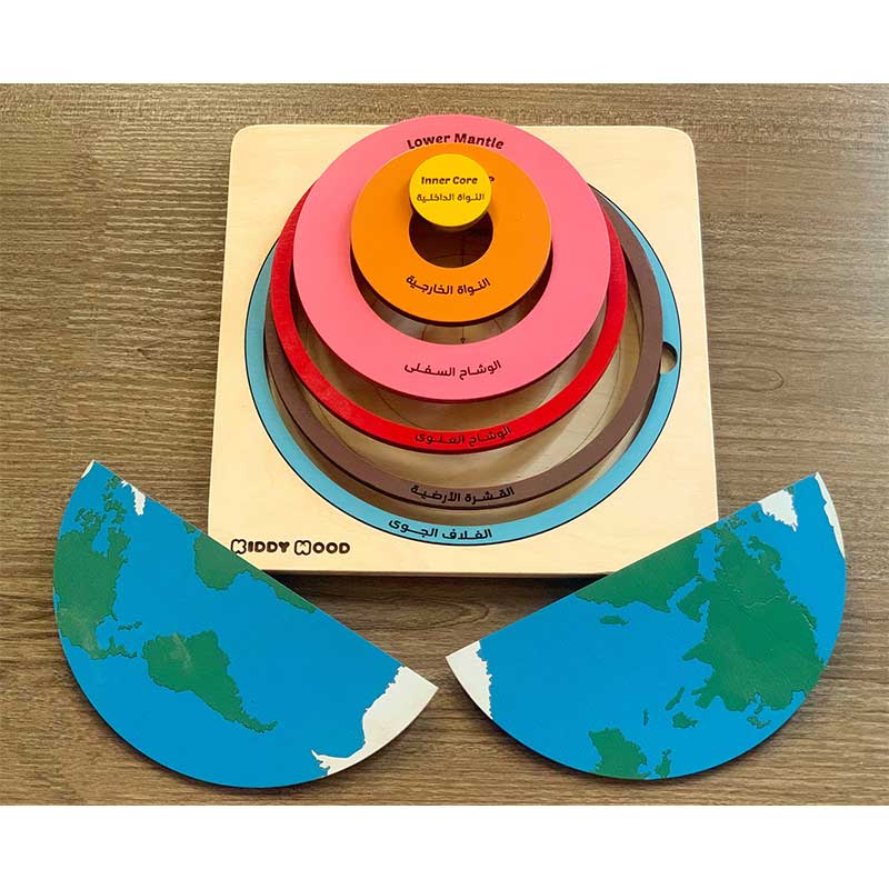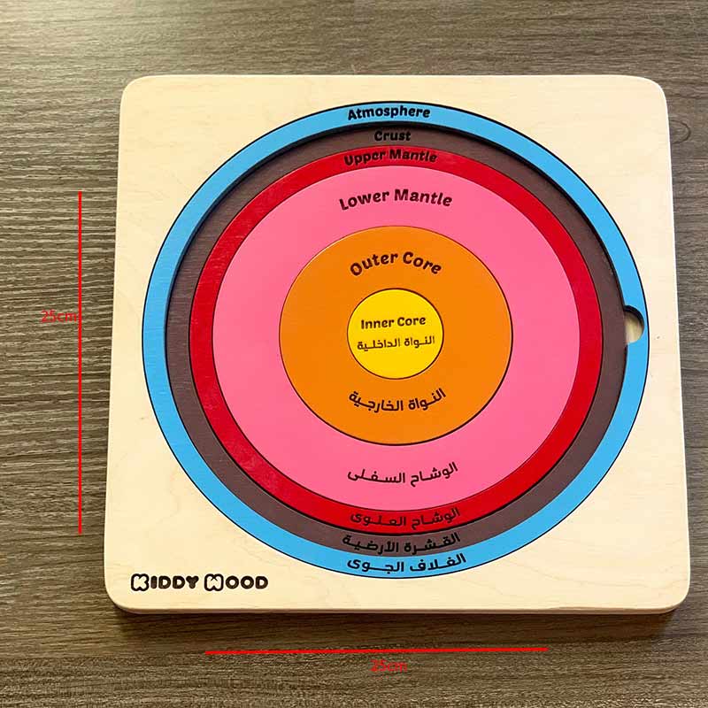 - التعرف على طبقات الارض : البازل يوضح ترتيب طبقات الارض بلون مختلف وحجم كل طبقة للتفرقه بينهم بسهولة