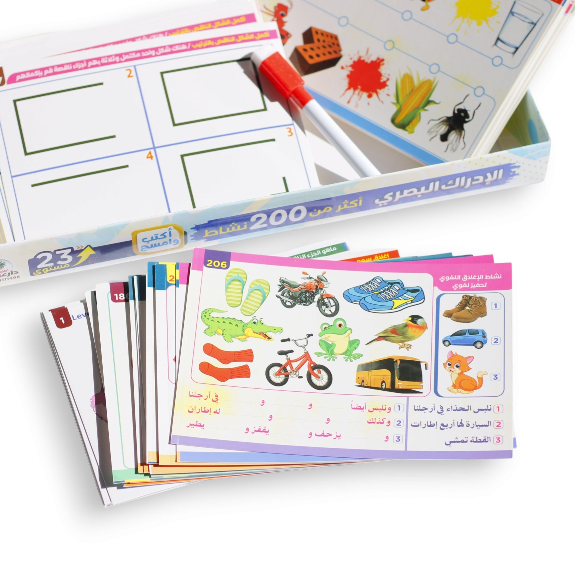 الادراك البصري مجموعة كروت تطور مهارات طفلك التعليمية بمجموعة الادراك البصري بأكثر من 200 نشاط شيق بـ 23 مستوى متدرج لتنمية التفكير والملاحظة
