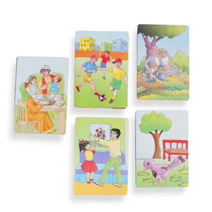 كروت قصص التخاطب درب طفلك على وصف القصص القصيرة من خلال 5 قصص مختلفة لتتحسن قدراته اللغوية وقدرته على وصف الصور في جمل قصيرة