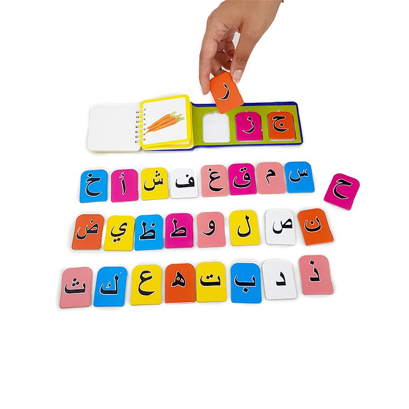 منتج ليتعلم الاطفال التهجئة و كلمات جديدة حيث يقوم الطفل بأختيار 3 حروف لتكوين الكلمة المناسبة للصوره