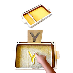 - تجربة حسية غنية: يتيح للطفل استخدام أصابعه أو القلم الخشبي لتشكيل الحروف فوق الرمل، مما يعزز التذكر والفهم.