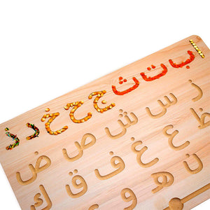 إحدى الطرق المبتكرة لاستخدام لوحة تتبع الحروف العربية هي ملء الحروف المحفورة بالحبوب أو الرمل أو الخرز، مما يجعل التعلم أكثر تفاعلية وحسية للأطفال.