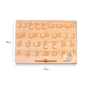 تتميز لوحة تتبع الحروف العربية بتصميم محفور لكل حرف من الحروف العربية، مما يتيح للأطفال فرصة تتبع الخطوط المحفورة بالقلم الخشبي أو بأطراف الأصابع. يساعد هذا النهج التفاعلي في: