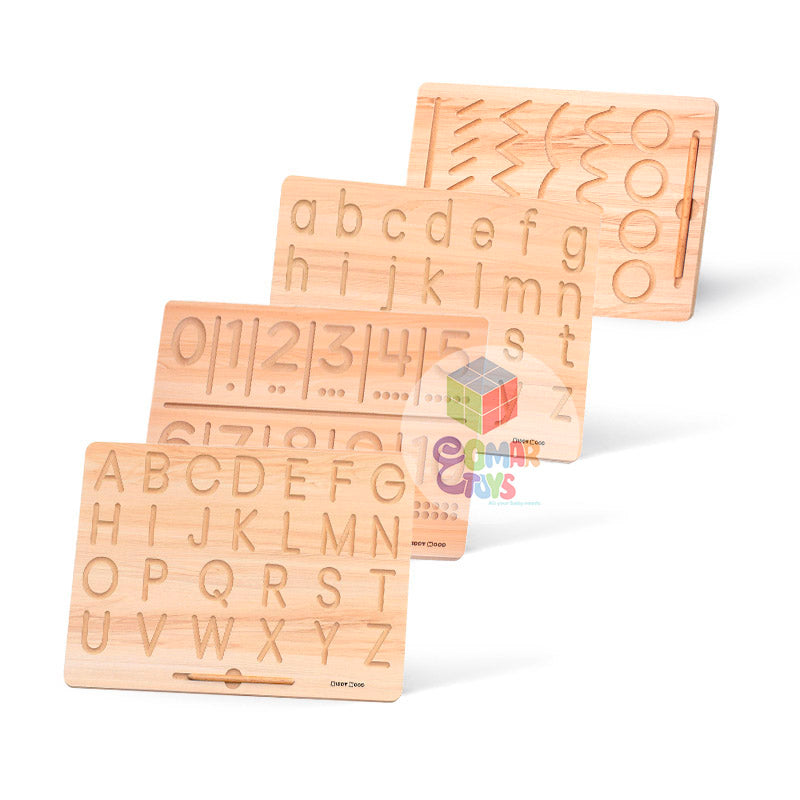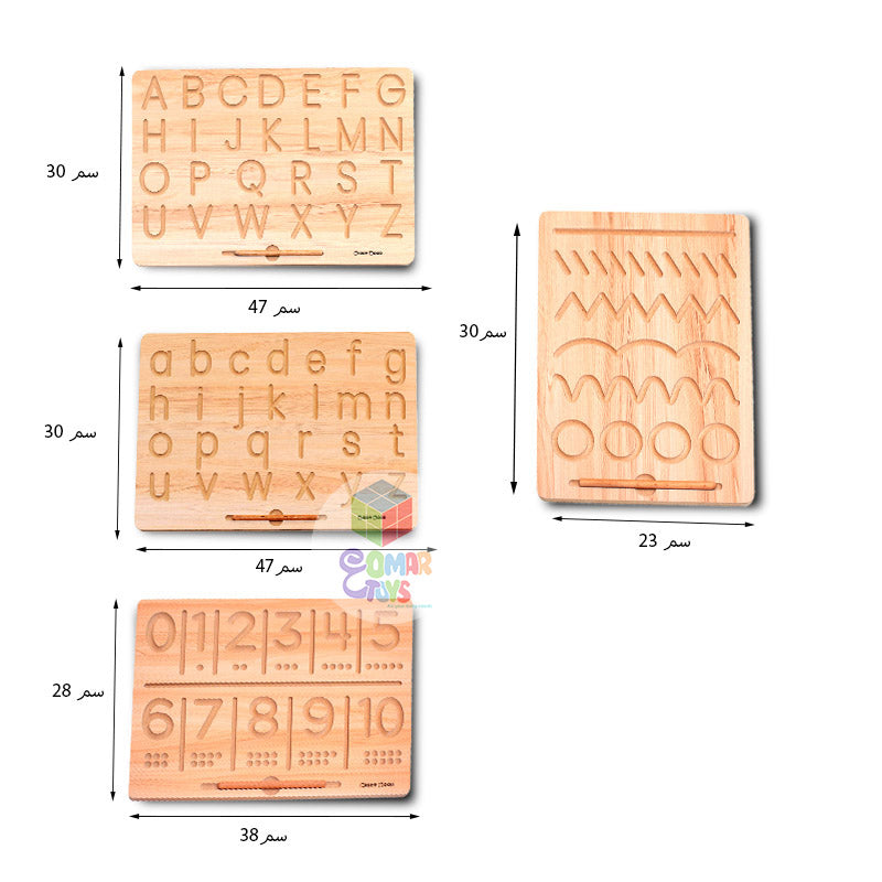 تم تصميم مجموعة لوحات التتبع الخشبية الإنجليزية لدعم التعلم التدريجي للغة الانجليزية، بدءًا من مرحلة ما قبل الكتابة، حيث يتعلم الطفل أساسيات التحكم بالقلم،