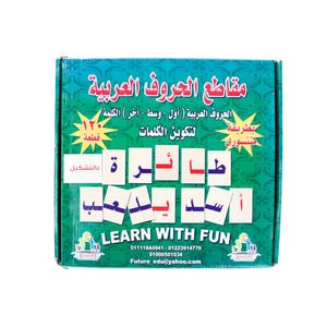 - العلبة شاملة الحروف العربية في أول الكلمة، منتصف الكلمة، اخر الكلمة و شاملة ايضاً التشكيل - - يتعرف الطفل على الحروف الابجدية و التمييز بينها و يتعلم ايضاً تكوين الكلمات