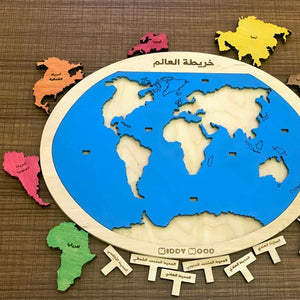 - تتوفر خريطة العالم باللغتين العربية والانجليزية
