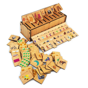 • عدد 6 من المساطر الخشبية كل مسطرة تحتوى على أشكال مختلفة من الأشياء التى يراها الطفل فى الحياه العملية بها صور او أشكال مختلفة