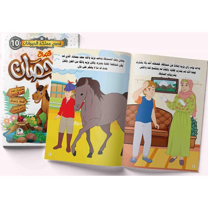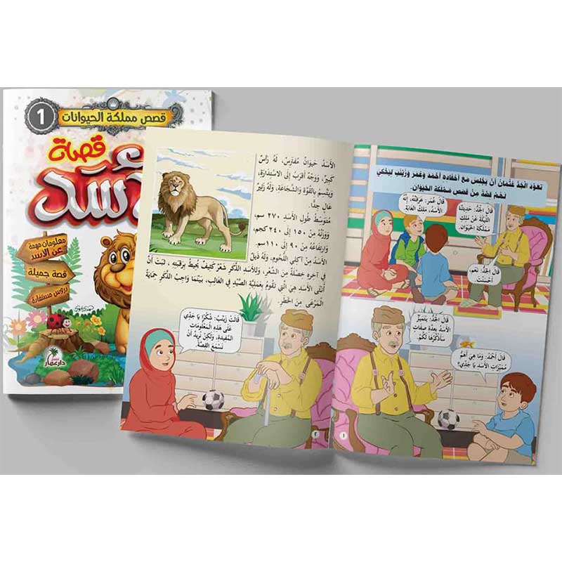 تشمل مجموعة قصص مملكة الحيوانات علي 10 كتب ، يحوي كل كتاب علي 8 صفحات من الورق الملون والمزودهرسومات جذابة و توضيحيه للقصة تتميز كل قصه بتناول حكايه تربويه للطفل بطريقه شيقه وممتعه عن طريق حكايات الحيوانات بالاضافه الي الغلاف الخارجي بمقاس 23*17سم تقريبا