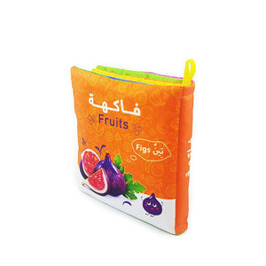 بداخل كل صفحة صورة لفاكهة مختلفة واسمها باللغتين الانجليزية والعربية