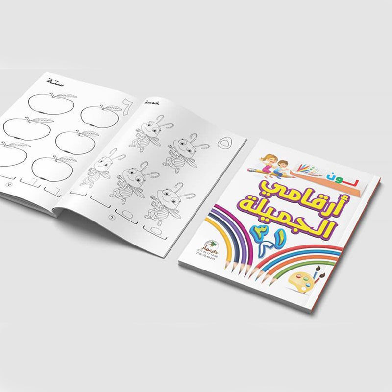 تلوين الاشكال والحروف والحيوانات المصاحبه للحرف واعادة كتابة الحرف و الارقام