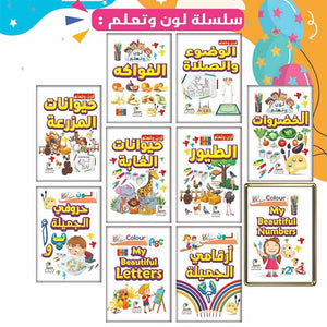 تشمل سلسلة لون وتعلم-دار عمار علي 10 كتب بمقاس 24*17سم تقريبا ، يحوي كل كتاب علي 16 صفحة بالاضافه الي الغلاف الخارجي تشمل كل صفحة علي نشاط مختلف بالتلوين والكتابة