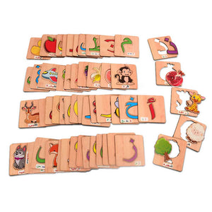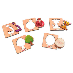 صندوق يحتوي على كل الحروف العربية مفرغة كالبازل لتعلم الحروف بطريقة تفاعلية