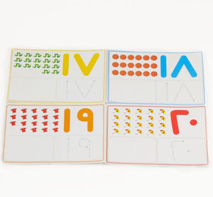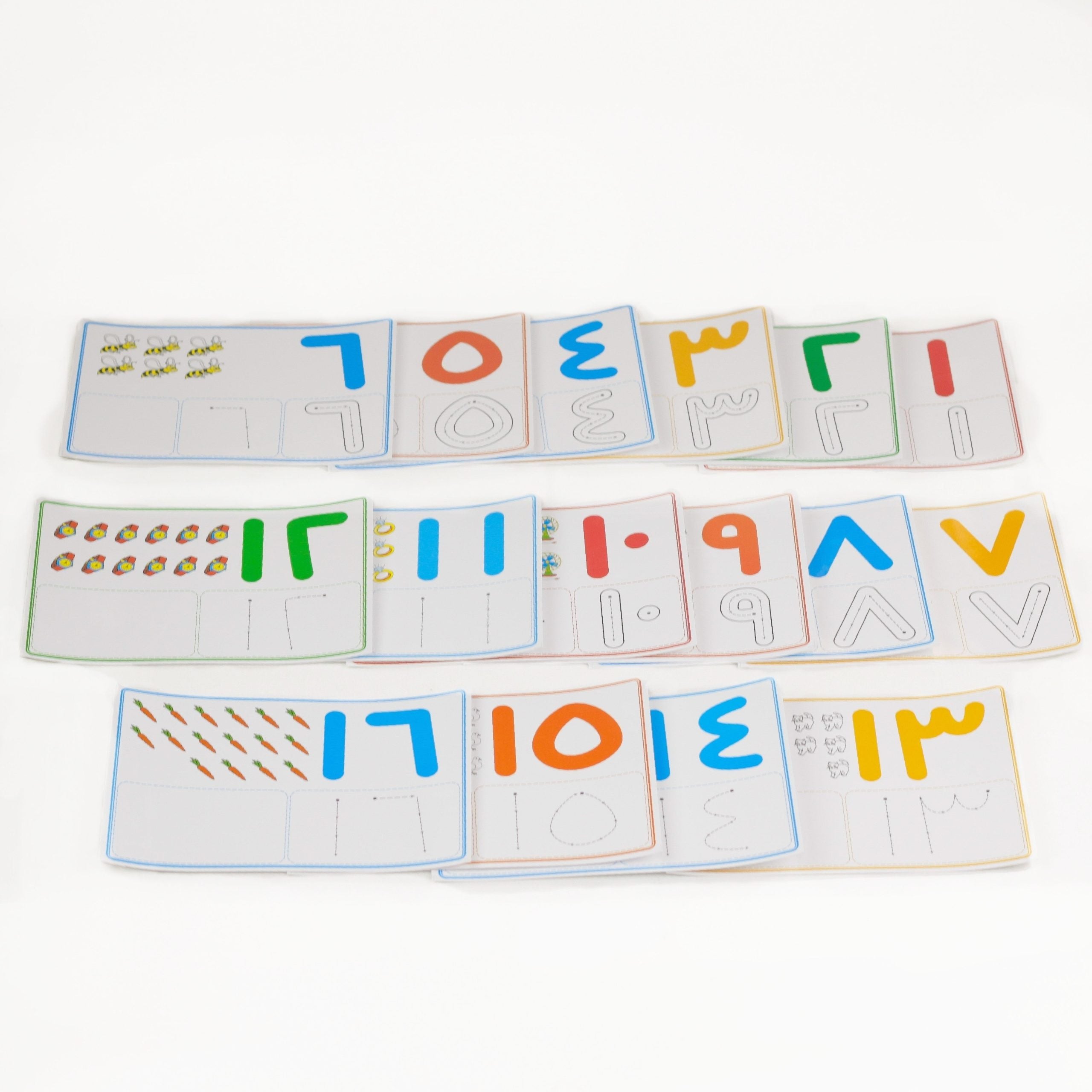 2. التدريب على كتابة الأرقام: باستخدام كروت اكتب وامسح يتعلم الطفل كتابة الارقام عن طريق الاسهم بطريقة متدرجة الصعوبة