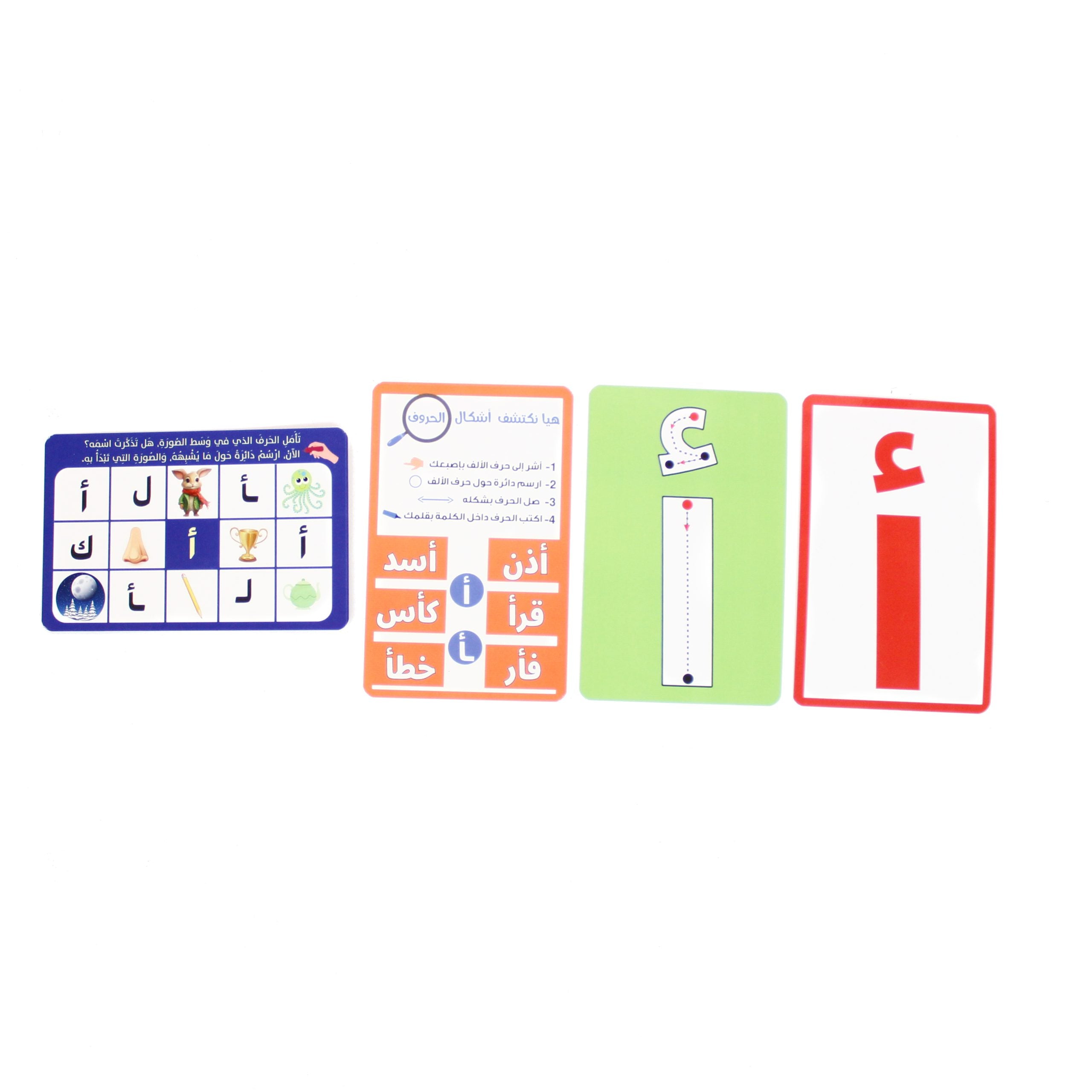 - التدريب على اشكال الحروف : من خلال بطاقات تستعرض مقاطع الحروف المختلفة.