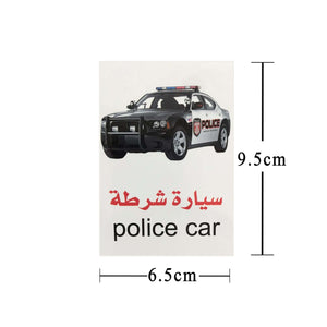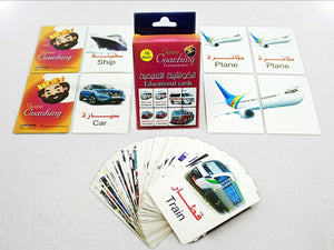 - تنمية الحصيلة اللغوية : الكروت بها ٢٤ وسيلة مواصلات مختلفة ويكتب اسمها باللغة العربية والانجليزية لمعرفة كل وسائل المواصلات والاختلافات بينها