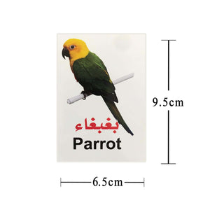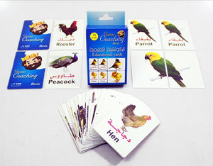 تنمية الحصيلة اللغوية : الكروت بها ٢٤ وسيلة الطيور المختلفة ويكتب اسمها باللغة العربية والانجليزية لمعرفة انواع الطيور والاختلافات بينها