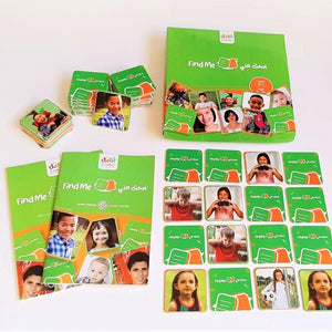 اللعبة عبارة عن علبة فيها ٥٠ كارت من كرتون تخين مقاسه ٦ * ٦سم، فيهم صور ٢٥ طفل متكررين.