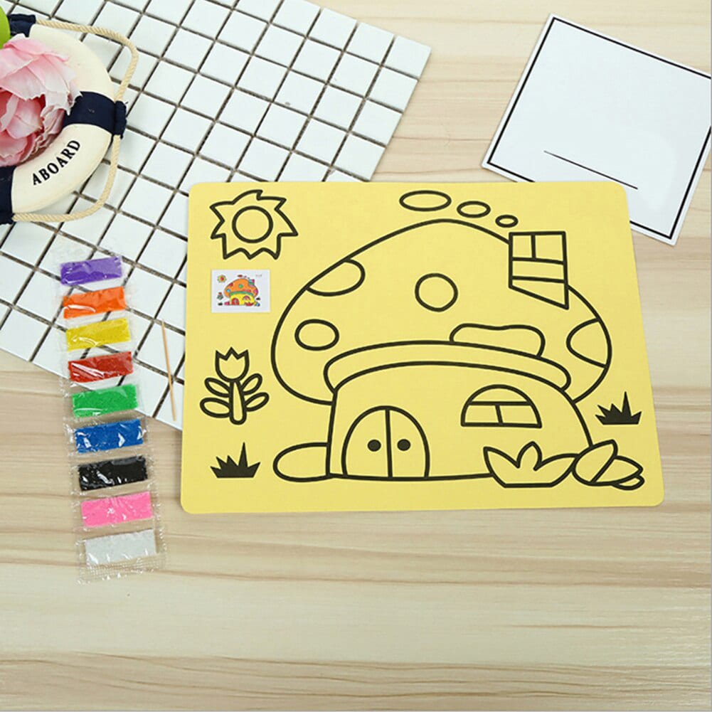 - هى عبارة عن كرتون مقوى مرسوم عليه اشكال متعددة يقوم الطفل بتلوينه بالرمل الملون