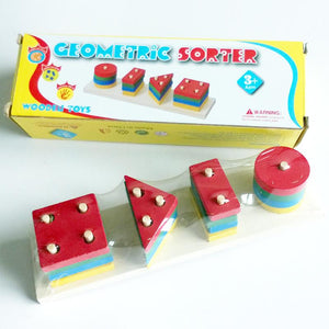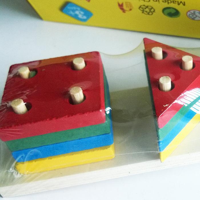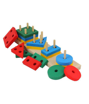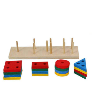 - يحتوي المنتج علي أعمدة خشبية بها مجموعة من الأشكال الهندسية بألوان مميزة تجذب الطفل للعب بها عن طريق الفك والتركيب.
