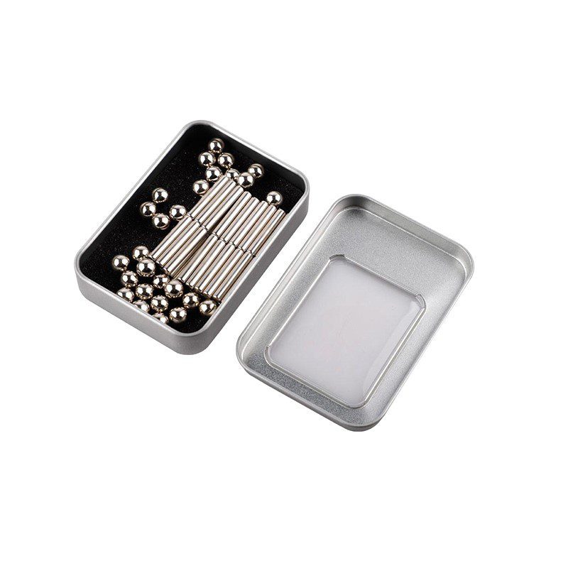 كرات مغناطيسية وعصيان مكونة من 36 عصا ممغنطة و 27 كرة كلاهما باللون الفضى