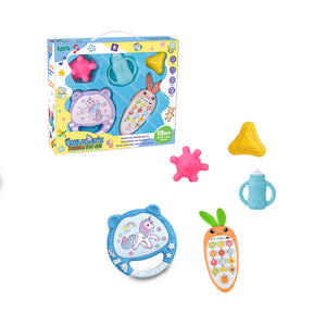 تحتوي العبوة على 5 قطع مختلفة تجمع بين المرح وتنمية الحواس، بألوان جذابة وآمنة تناسب البنات والأولاد.