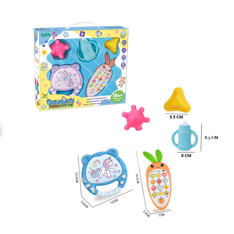 الألعاب المختلفة في المجموعة بتشجع الطفل على المحاولة والاستكشاف: يضغط أزرار، يمسك أشكال، يسمع أصوات، ويلاحظ ألوان.