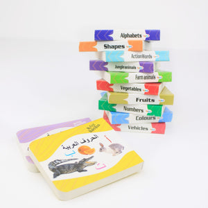 لمساعدة الطفل على الكلام وتعريفه بالحروف والارقام باللغتين وكلمات وتأهيله لدخول الروضة