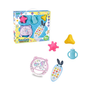 تحتوي العبوة على 5 قطع مختلفة تجمع بين المرح وتنمية الحواس، بألوان جذابة وآمنة تناسب البنات والأولاد.