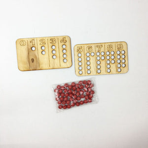 تعتبر لوحة العد بالخرز انجليزي-المستقبل أداة مهمة ومشهورة في منهج مونتيسوري، وهي أداة حسية من الدرجة الأولى K تعتمد على 3 حواس اللمس والبصر والسمع لتعليم الأرقام أو الحروف للطفل