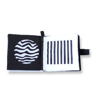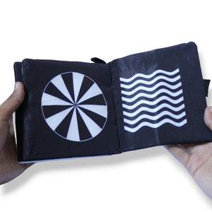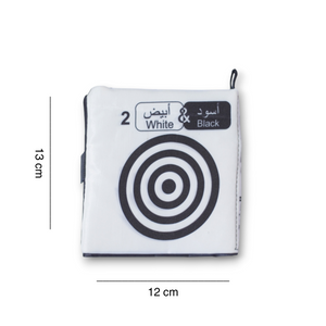 كتاب قماش ابيض واسود يساعد طفلك من اليوم الأول وابدأ بتنمية وعيه لرؤية الأشكال المختلفة بوضوح