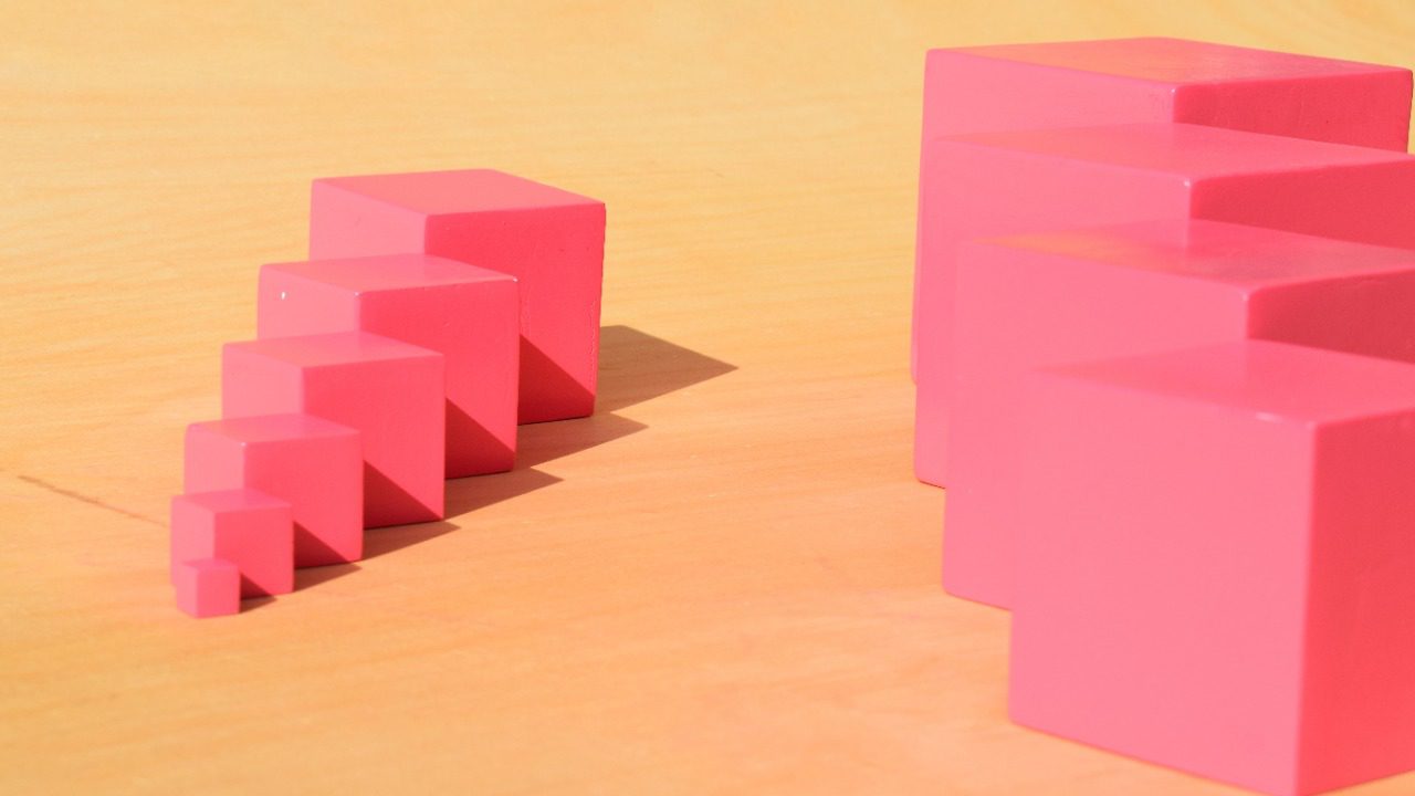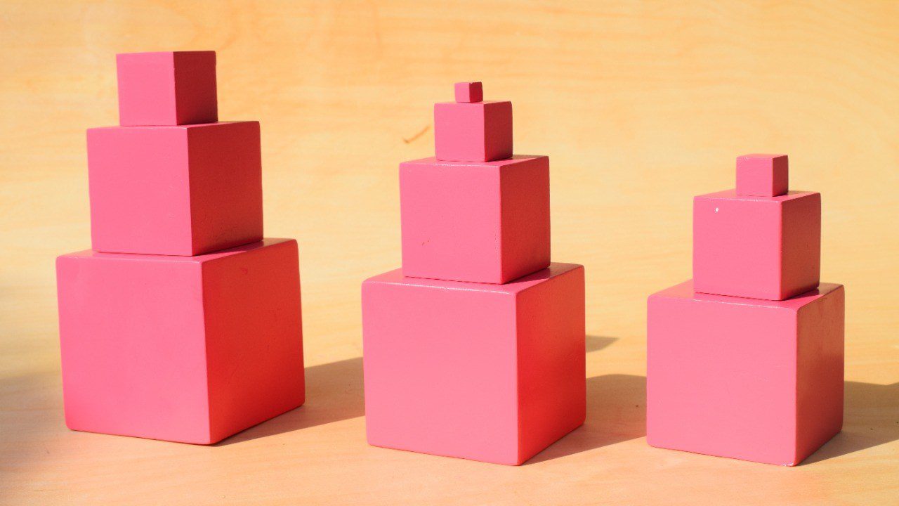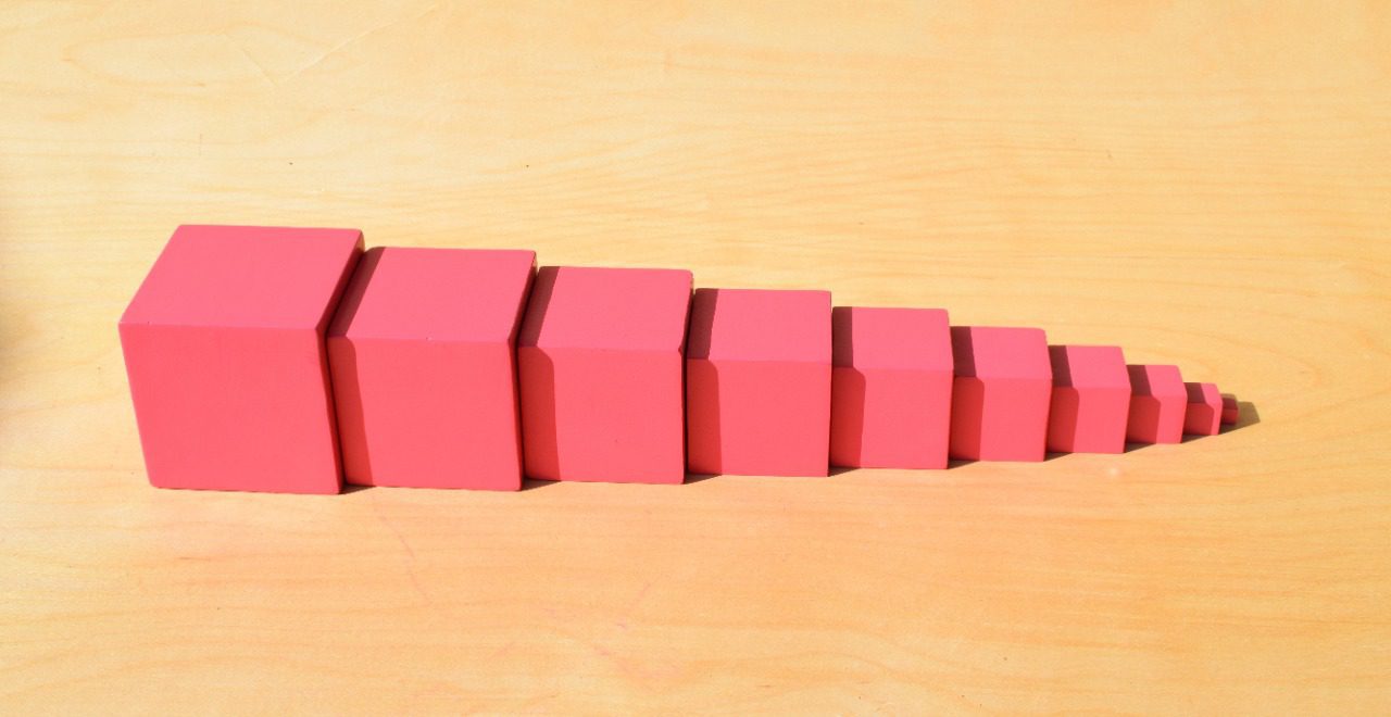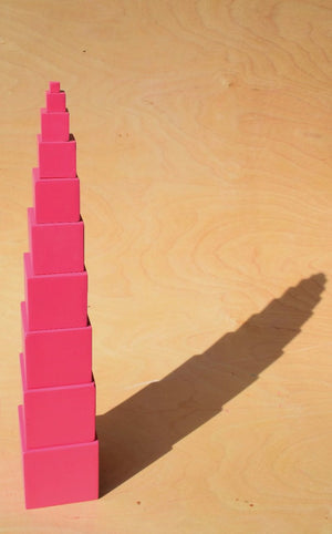 تمرين البرج الوردى هو أحد تمارين التعليم الحسى فى مدرسة منتسورى وهو مخصوص بتطوير حاسة البصر عند الطفل