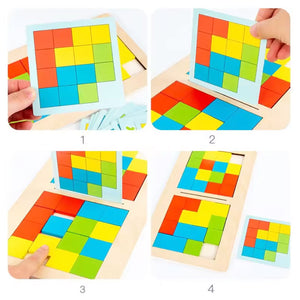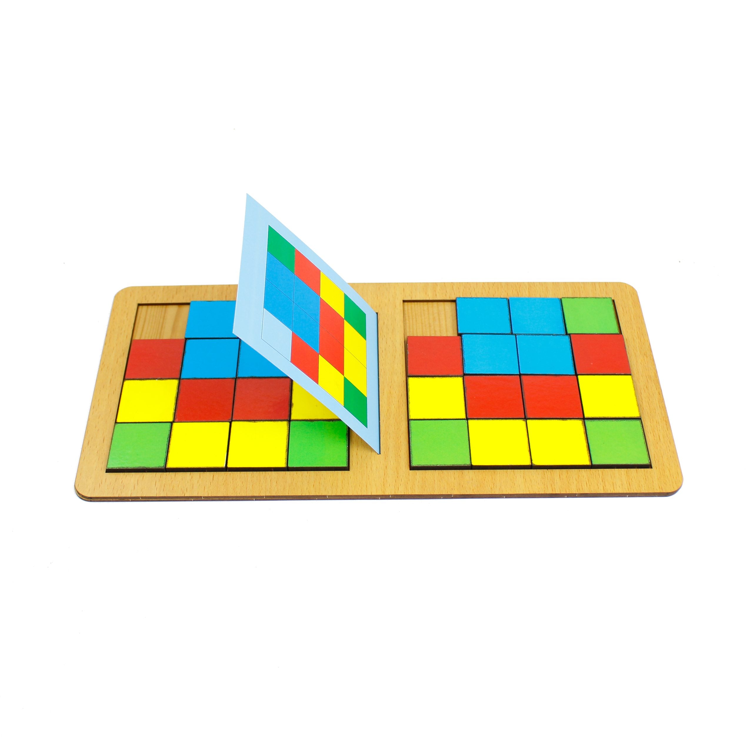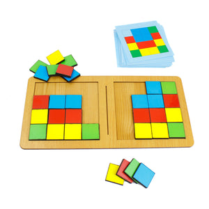 لعبة جماعية لفردين يحاول فيها الطفل الوصول الي الشكل المطلوب في الكارت بأسرع وقت عن طريق تحريك القطع الخشبية مما يطور من مهاراته العقلية