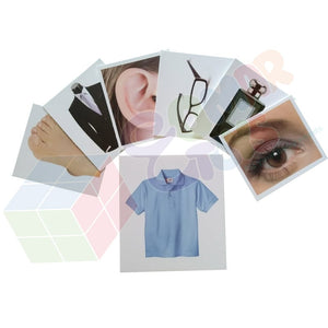 تتكون مجموعة الكروت من 60 صورة صماء لجسم الإنسان والملابس والأدوات الشخصية