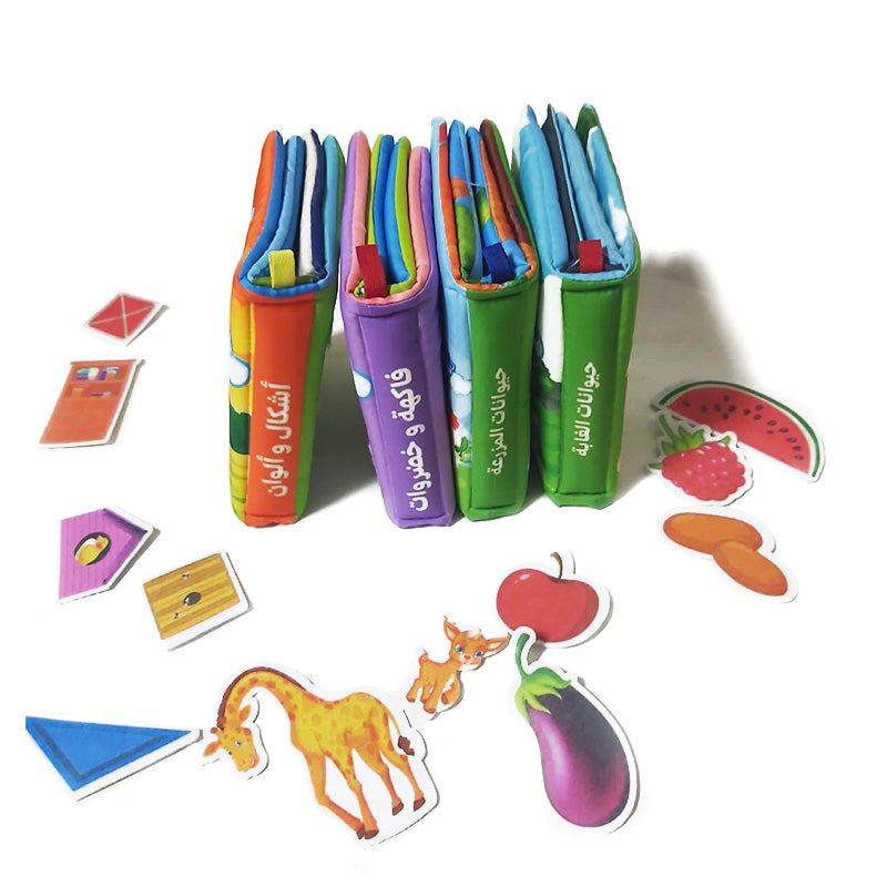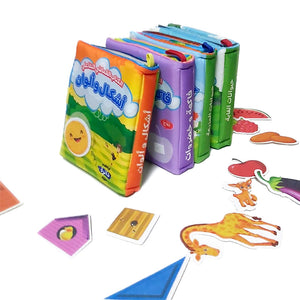 امنحي طفلك تجربة تعليمية لا تُنسى مع مجموعة الكتب القماشية التفاعلية المكونة من 4 كتب ممتعة تساعده على التعلم من خلال اللعب!