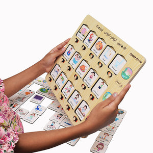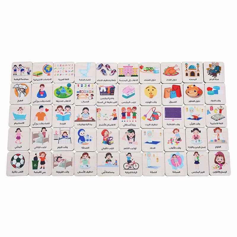 مصنوعة من خشب MDF متين، ومعاها 50 كارت خشبي ملون برسومات لبنت بتعبر عن مختلف الأنشطة اليومية — من وقت المذاكرة لحد اللعب والنوم. الرسومات البناتية المبهجة هتخليها تتحمس ترتب يومها بنفسها وتنجز المهام بشكل أسهل وأمتع.